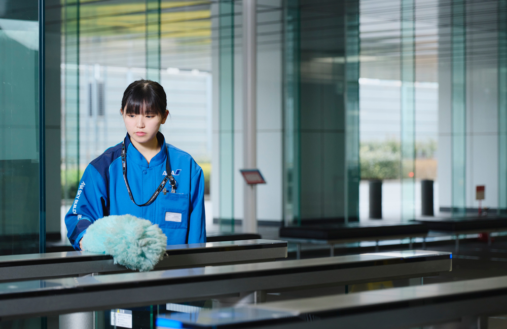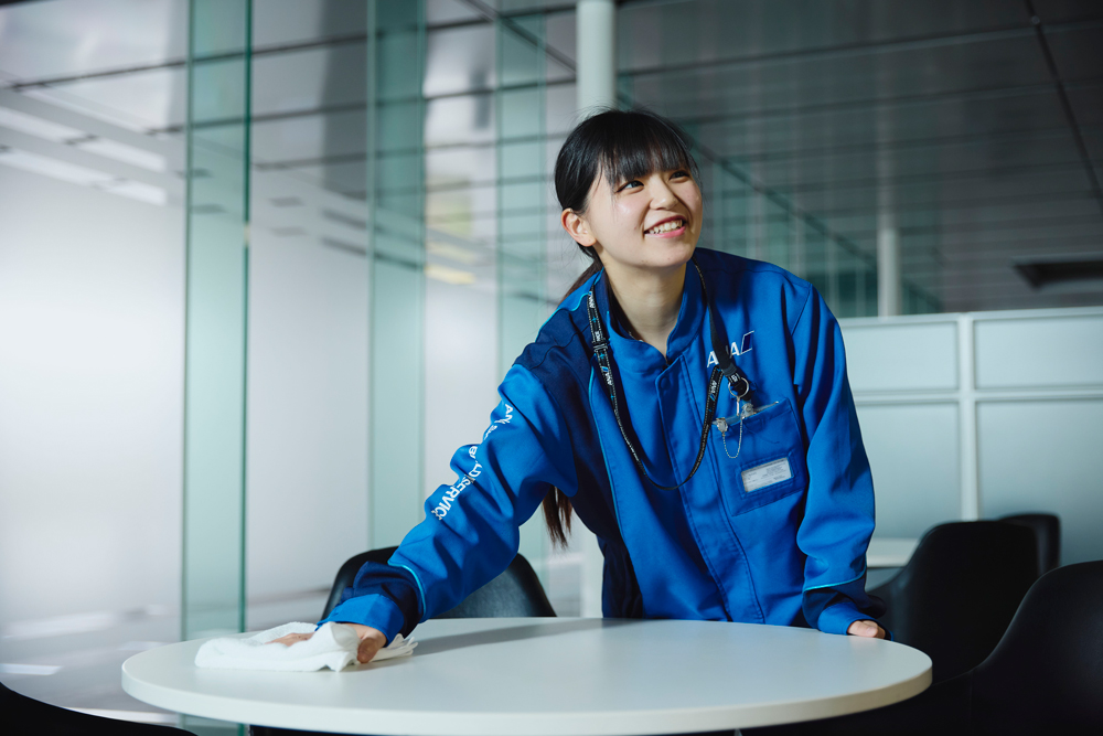 一番は世界一キレイな空港として評価されている羽田空港で清掃作業を通じて貢献している事に、やりがいを感じます。清掃作業は陰で支える仕事ですが、施設の美観や保全、利用者の方々の健康を守る役割があるので自分たちの作業を通じ、それらに貢献出来ていると思うと尚更です。