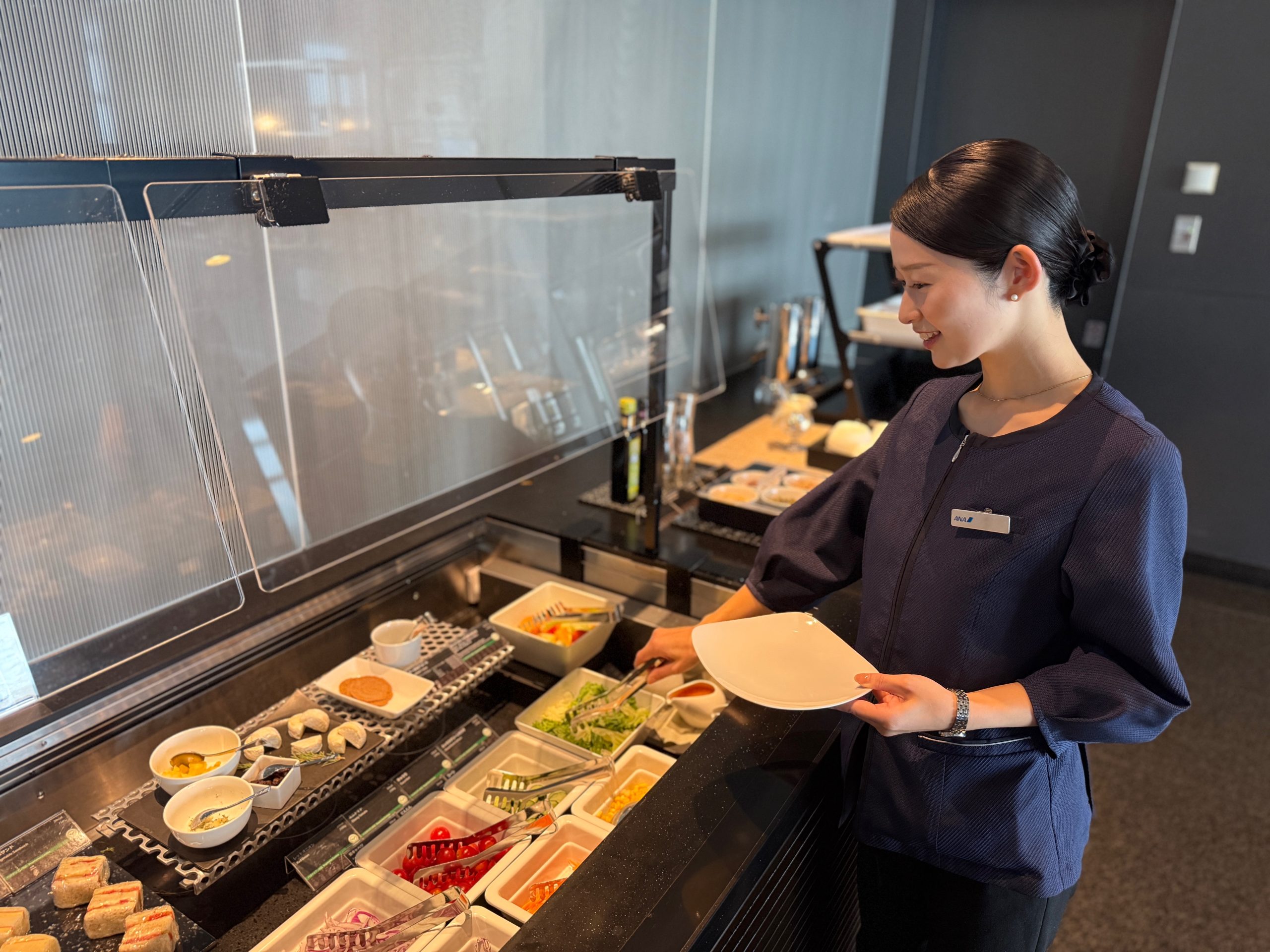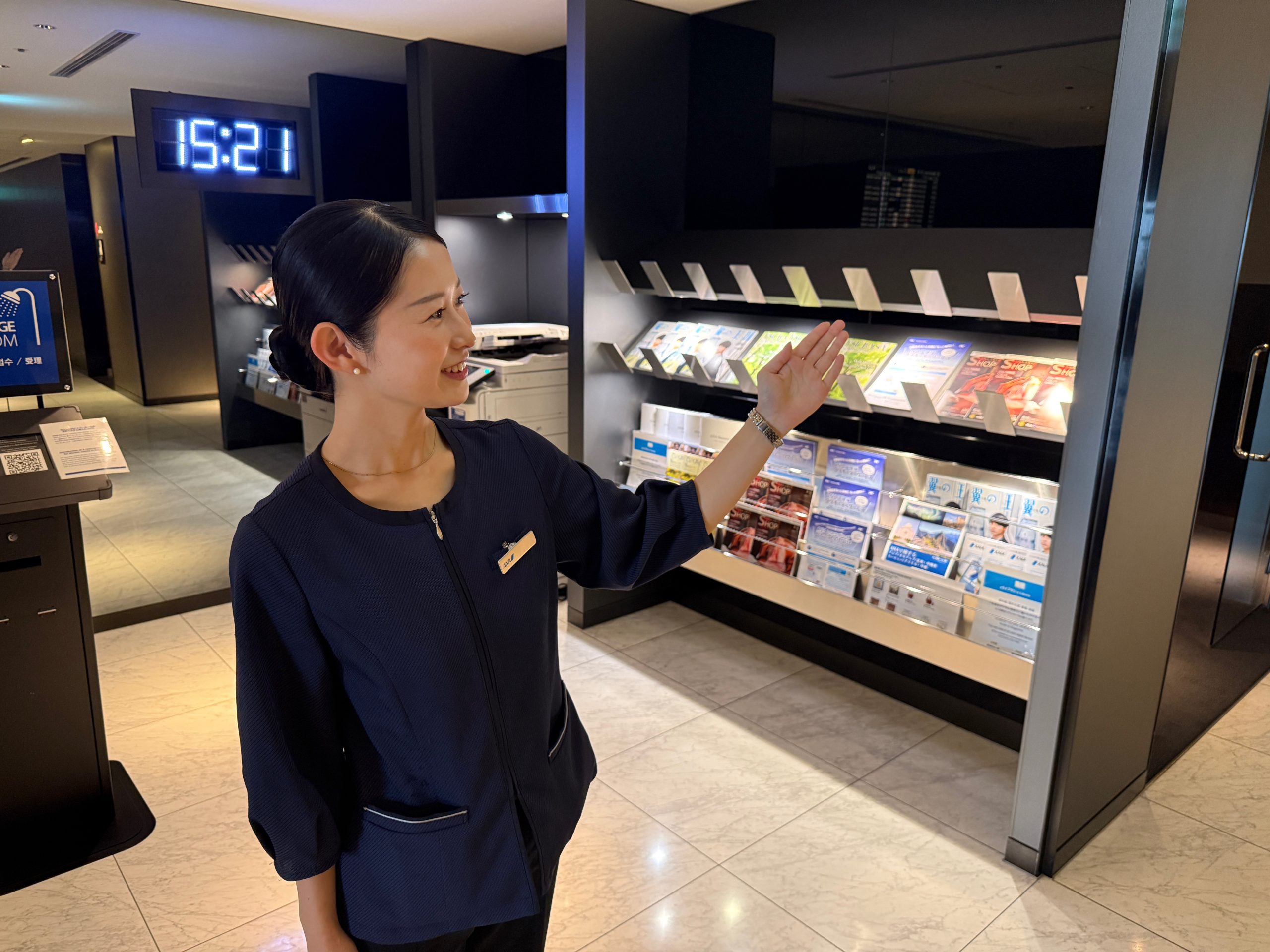 また、フロア責任者として、フロア内の品質・安全・危機管理、混雑緩和対応などお客様により過ごしやすい空間を提供するためのフロアコントロールを行っています。大切にしていることは、様々な思いや用途でラウンジを利用されるお客様一人一人のニーズにあった対応や快適且つ安心して過ごして頂くための空間づくりを心掛けています。